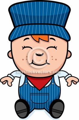 Train engineer cartoon: Train Conductor Sitting