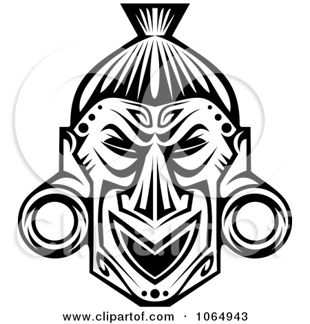 Hawaiian tribal clip art black and white: Tribal Mask Black And White 9