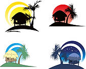 Hut clipart: tropical huts with palm tree