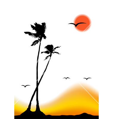 Palm tree beach sunset: Tropical sunset palm tree