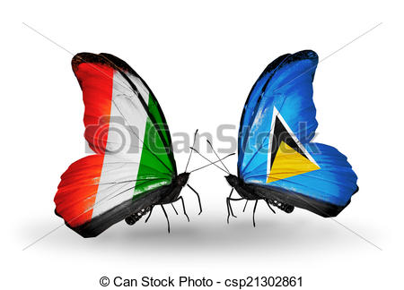 Cote clipart: Two butterflies with flags on wings as symbol of relations Cote Divoire and