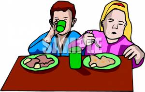 Kids eating lunch clipart: Two Children Eating
