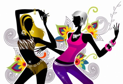 Group of girl friends clipart: Two Girls Dancing on Floral