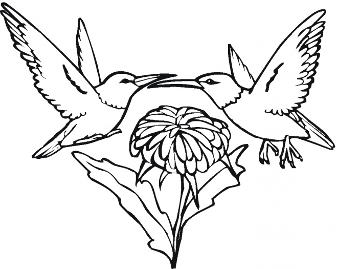 Hard peacock coloring pages: Two Hummingbirds And Flower