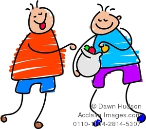 Sharing clipart: Two Little Boys Sharing A Bag