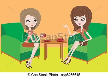 Talk clipart: Two young women talk in