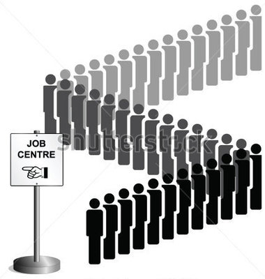 Unemployment clipart: Unemployed people queuing at a