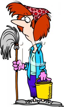 Unhappy family clipart: Unhappy Woman Holding a Mop