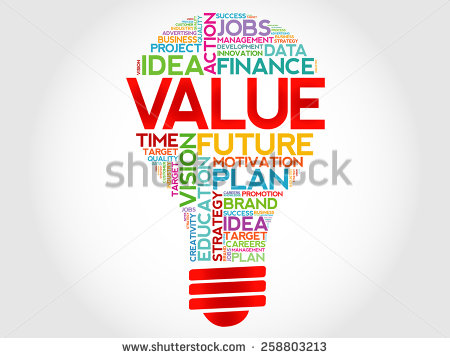 Value clipart: VALUE bulb word cloud,