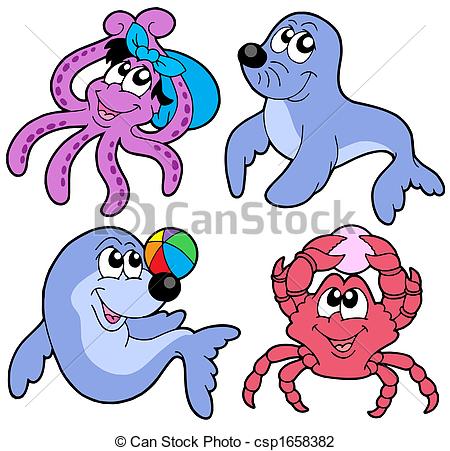 Marine clipart: Various cute marine animals