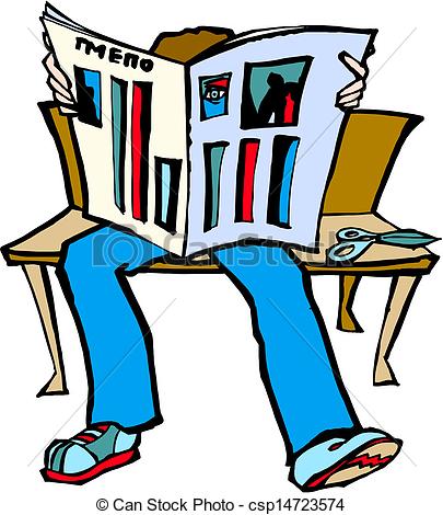 Reading newspaper clipart: Vector - businessman reading a