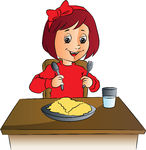 Kids eating at table clipart: Vector Clip Art