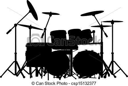 Drum set clipart black and white: vector drum kit silhouette on
