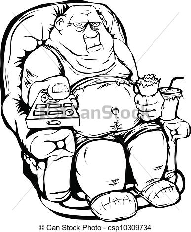 Tv remote drawing: Vector - Fat man with a remote
