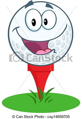 Golf ball on tee with grass clip art: Vector - Happy Golf Ball