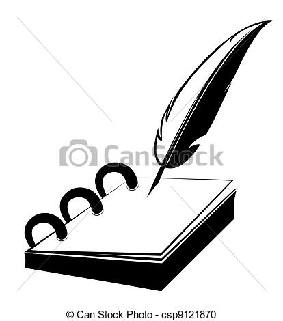 Quill and paper clipart: Vector - Notepad with quill