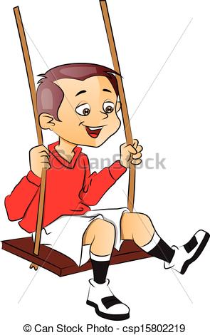 Swing clipart: Vector of happy boy on swing.