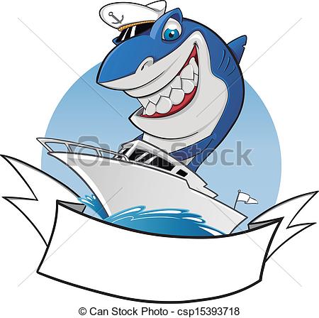 Smiling shark clipart: Vector - Shark riding a boat
