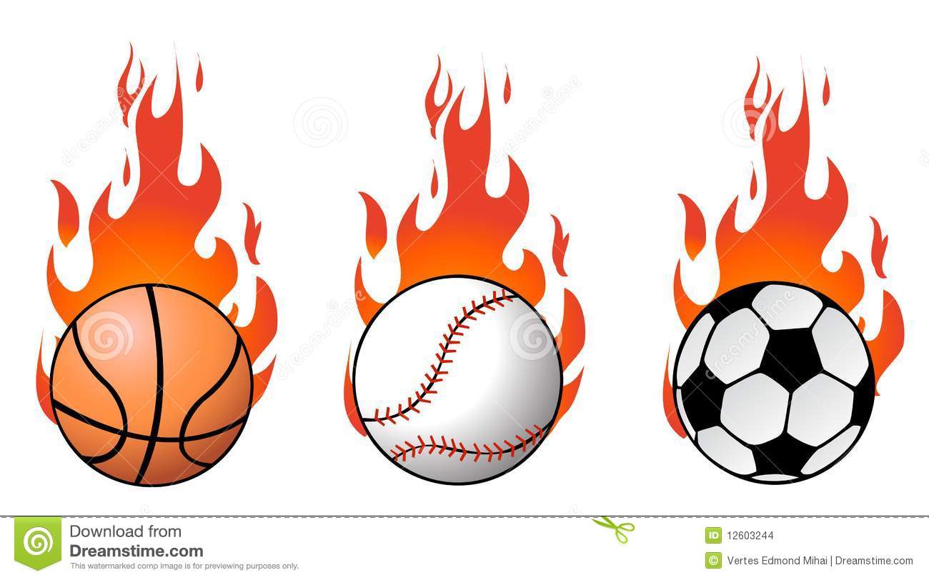 Sports balls vector: Vector sport balls on flames