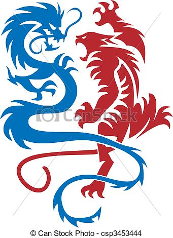 Chinese tiger clipart: Vector - Tiger & Dragon