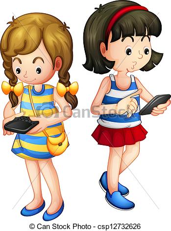 Girls Clip Art: Vector - Two girls holding a