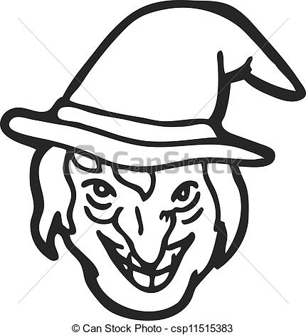 Witch face clipart: Vector - witch face doodle