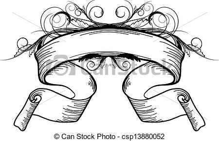 Ribbon banner clipart black and white: Vintage Scroll Ribbon in Black