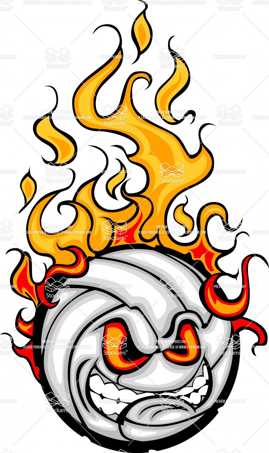 Flaming volleyball vector: Volleyball Ball Flaming Face