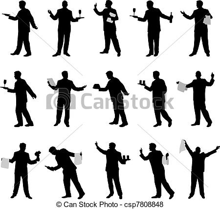Establishment clipart: Waiter vector silhouettes