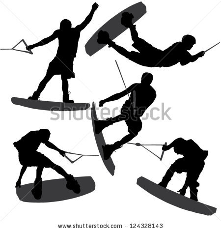 Water Boarding clipart: Wake-boarding Silhouette on