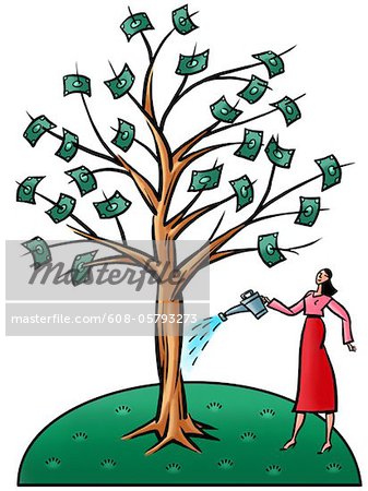Watering money tree: watering a money tree
