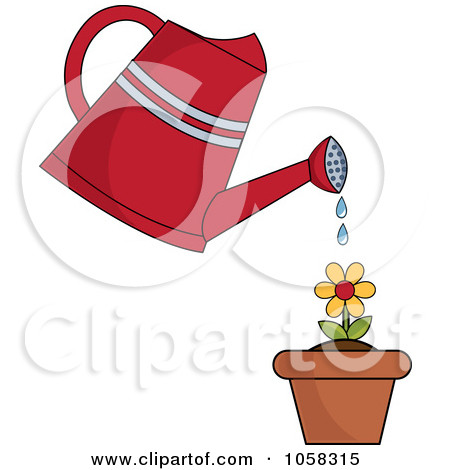 Watering can clipart black and white: Watering Can Over A Flowering