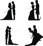 Vintage wedding dress clipart: wedding couple silhouettes -