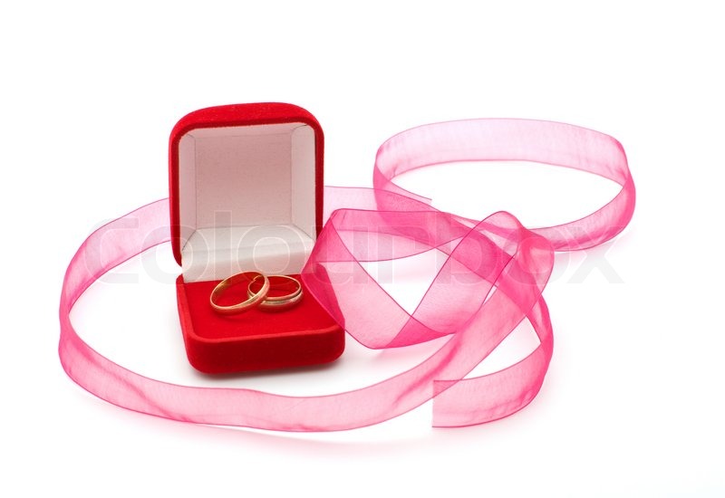 Christian wedding background: Wedding rings in the red box