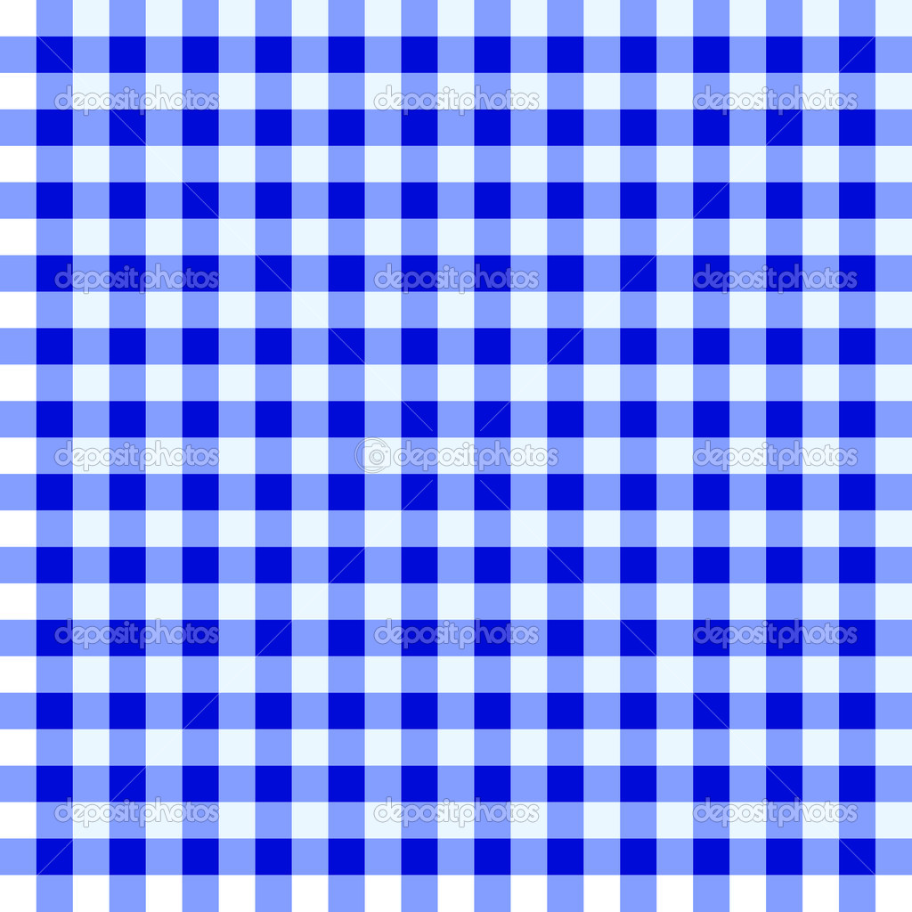 Picnic table with tablecloth: white checked tablecloth