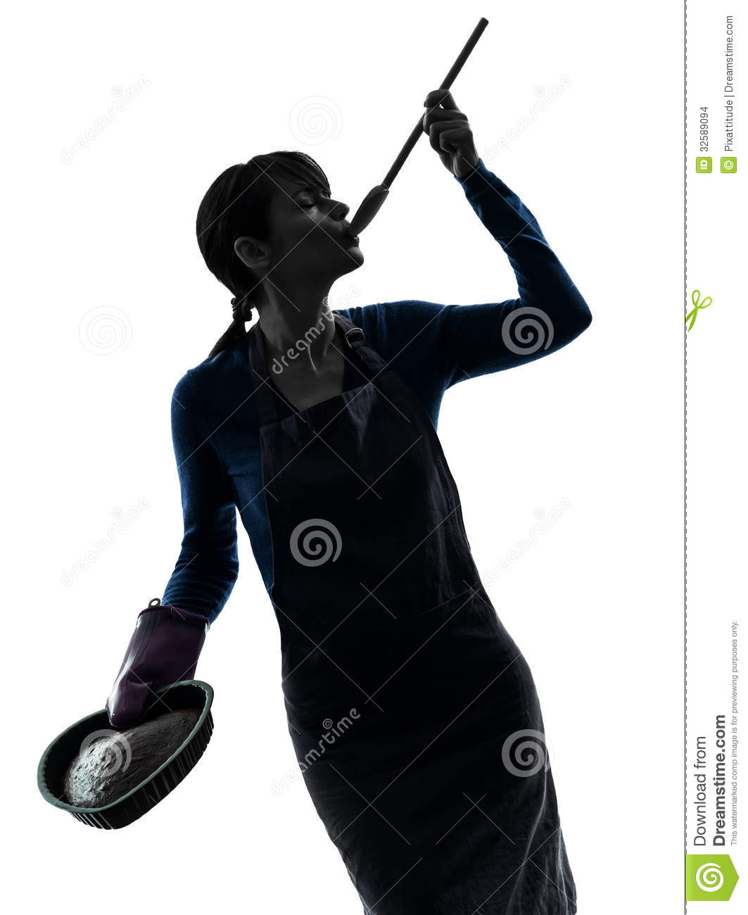 Woman cooking silhouette: Woman cooking cake tasting