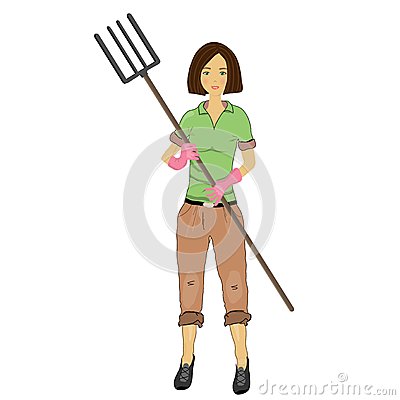 Female farmer cartoon: Woman farmer with a pitchfork