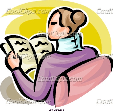 Brace clipart: woman in a neck brace reading