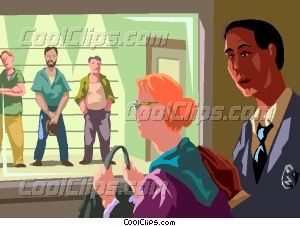 Suspect clipart: woman looking at suspects in a