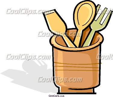 Cooking utensils clipart: wooden utensils in a crock-pot