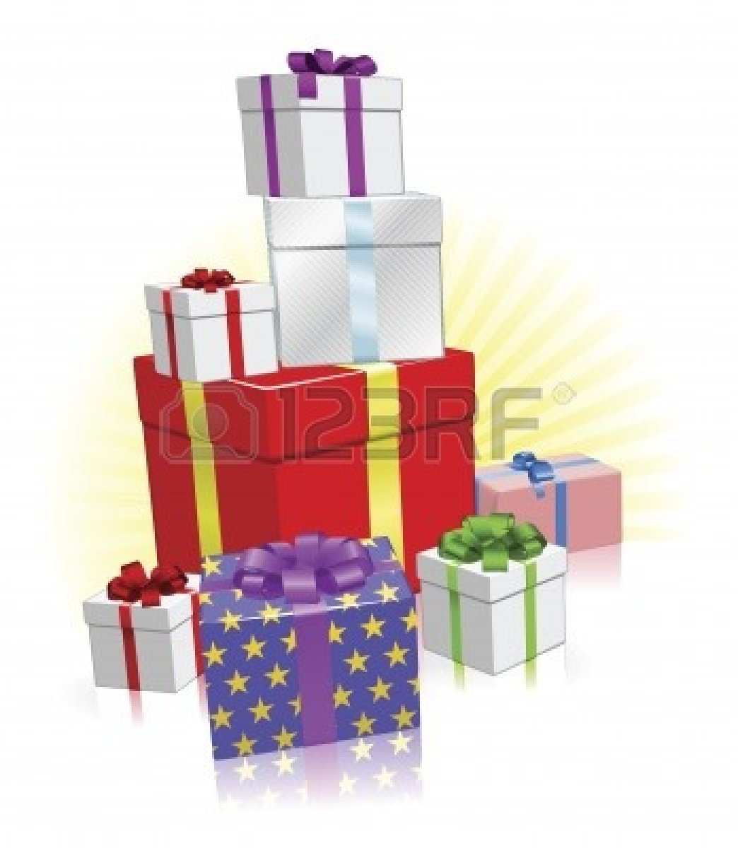 Pile of birthday presents clipart: wrapped present : Stack of