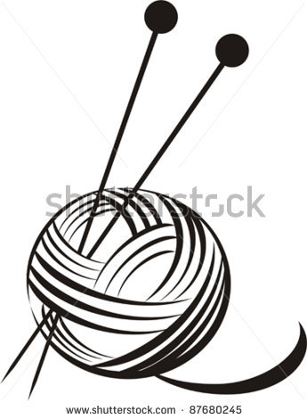 Yarn clipart black and white: yarn ball with needles