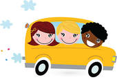 School bus side view flat front: Yellow school bus with kids