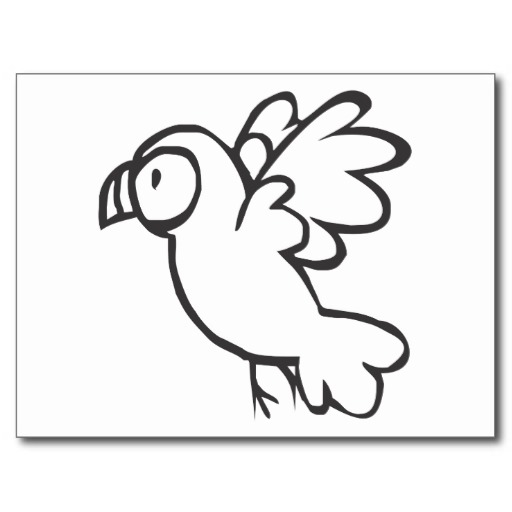 Cute parrot drawing: Young Parrot Flying in Black
